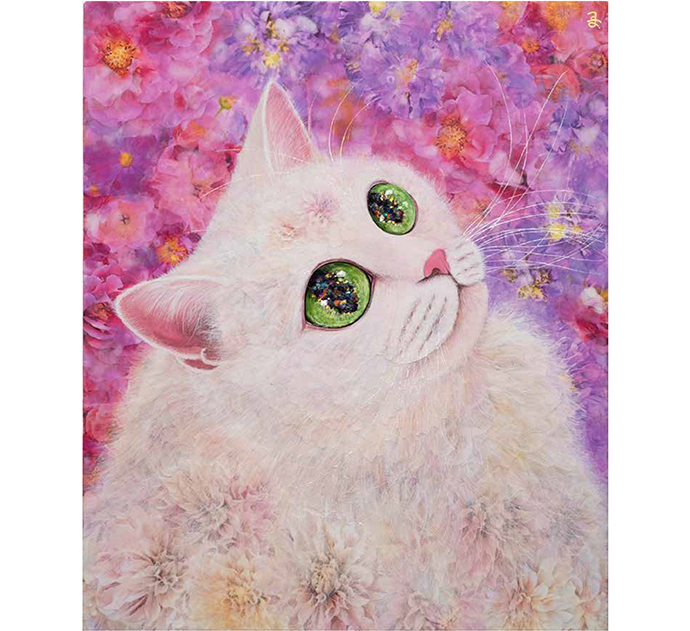 迷い猫のおいちゃんと暮らし始めたのをきっかけに猫に魅了され、当時一番身近な表現方法であった絵に描き始める。猫の魅力を最大限に表現する方法を模索しながら、様ざまな素材を用いた独自の技法を編み出し表現している。イギリスでイラストレーションを、帰国後には日本画を学び、日本画から取り入れた繊細なタッチと共に、日本文化ではあまり見かけない鮮やかな色使いの絵を描く。現在、滋賀にてたくさんの猫と暮らしながら制作し、個展や国内外の催事などで作品を発表している。
