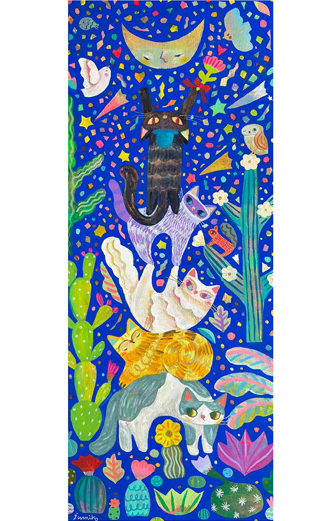 メキシコの色彩や文化などから影響を受けた、カラフルで楽しい作品を制作。2000年に初めてメキシコへ旅行したことをきっかけに、現在は日本とメキシコを拠点に活動中。東京や仙台、メキシコシティで個展を開催するほか、全国の百貨店や書店での催事に出展中。